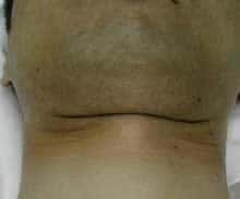 以下の写真は、施術により首のカーブが変わってのどぼとけがまっすぐになった例です。